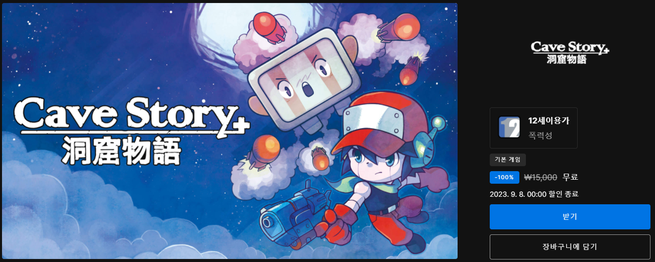 이번주 에픽게임즈 무료 배포 게임은 인디 어드벤처 액션 게임 "Cave story +" 입니다.