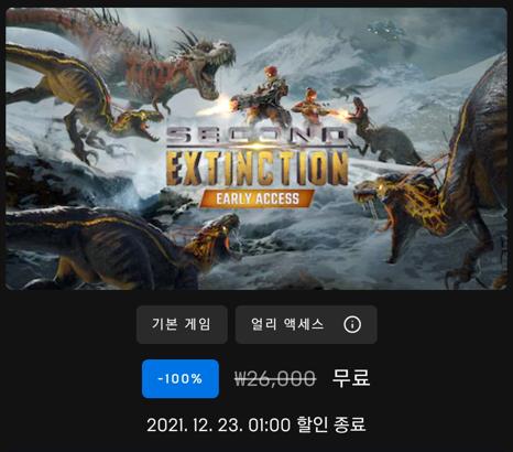 에픽게임즈 100% 할인(무료배포) 게임, “Second Extinction”