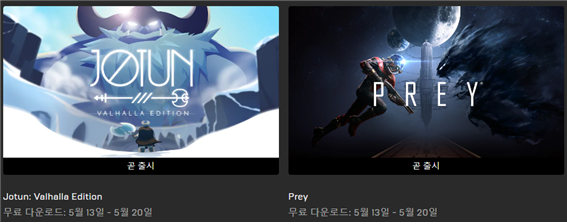 다음 주 무료 배포게임은 2가지이네요.