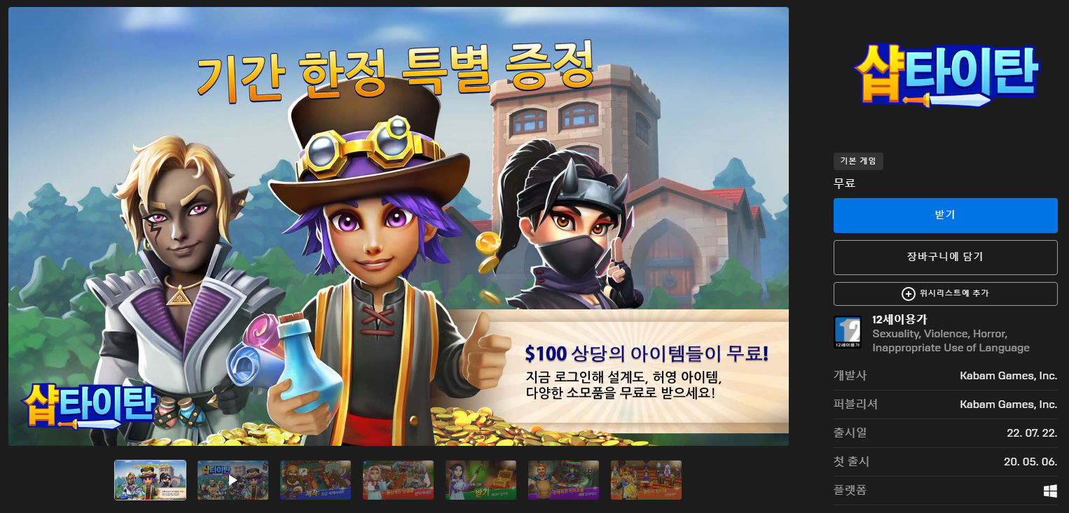 원래 샵 타이탄은 무료 플레이 게임인데요, 이번주 약 100달러 상당의 아이템을 준다고 하네요.