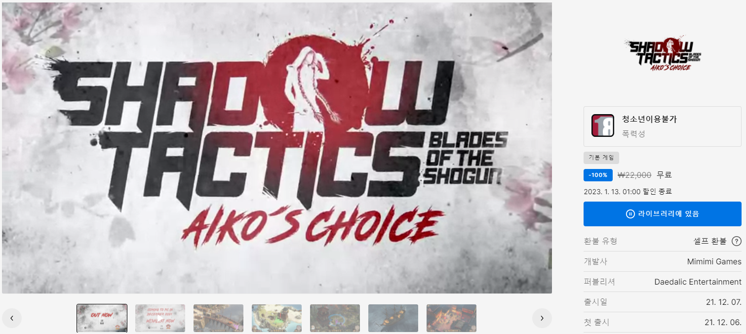 두번째로는 "Shadow Tactics:Aiko's choice" 입니다.