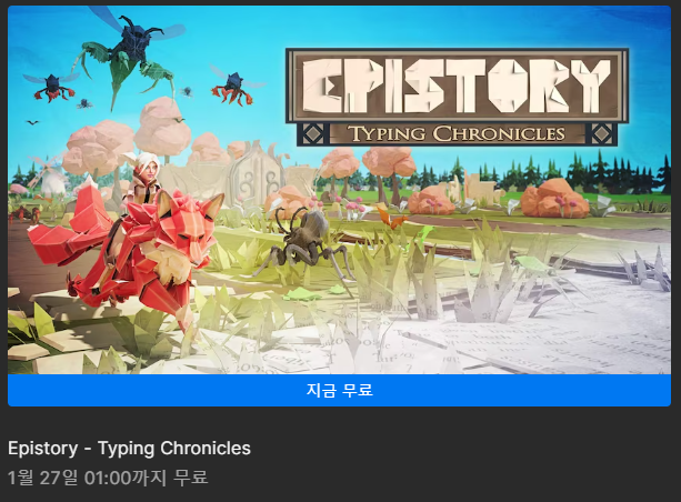 이번주, 아니 지난 금요일 에픽게임즈의 무료 배포 게임은 "Epistory - Typing Chronicles" 입니다.